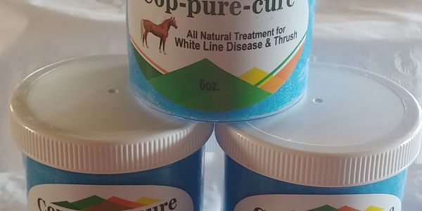 Cop-pure-cure was developed by a top Equine farrier who saw the need for a product that was All Natural and really works on treating White line disease and Thrush. We have been developing Cop-pure-cure Products since 2016 and have used Cop-pure-cure on our own horses and clients horses for years now and have seen amazing results. Cop-pure-cure has no harsh chemical all nor does it have drying agents such as clay in it.When applying it leaves a water resistant seal on the hoof not allowing water to soak into it. Cop-pure-cure is a putty consistency that it able to soak right up into the hoof and start working.